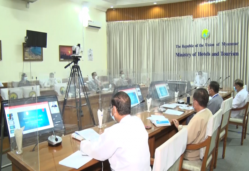 မြန်မာနိုင်ငံခရီးသွားမြှင့်တင်ရေးကို အထောက်အကူပြုရန်အတွက် ပုဂံမြို့ရှိ၊ Bagan Information Training Centre (BITC) တွင် ပြည်တွင်းပြည်ပခရီးသွား ဧည့်သည်များနှင့် ပြည်သူများ ကြည့်ရှု့နိုင်မည့် နေပြည်တော်ကောင်စီနယ်မြေအပါအဝင် တိုင်းဒေသကြီး/ ပြည်နယ်များရှိ ခရီးစဉ် ဒေသများနှင့် ခရီးသွားဆွဲဆောင်မှုများကို ရိုက်ကူးထားသည့် Virtual Reality ပြခန်း ဆောင်ရွက် ထားရှိမှုနှင့်ပတ်သက်၍ ရှင်းလင်းတင်ပြသည့် အစည်းအဝေးကို ယနေ့၊ မွန်းလွဲပိုင်းတွင် ဝန်ကြီးဌာန၊ နီလာအစည်းအဝေးခန်းမ၌ ဗီဒီယိုကွန်ဖရင့်စနစ်ဖြင့် ကျင်းပရာ ဟိုတယ်နှင့် ခရီးသွားလာရေး ဝန်ကြီးဌာန ပြည်ထောင်စုဝန်ကြီး ဒေါက်တာ ဌေးအောင် တက်ရောက်သည်။