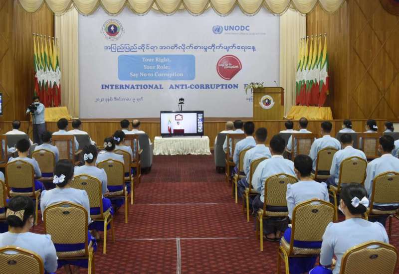 ၂၀၂၁ ခုနှစ် အပြည်ပြည်ဆိုင်ရာ အဂတိလိုက်စားမှုတိုက်ဖျက်ရေးနေ့ အထိမ်းအမှတ် အခမ်းအနား ကို ယနေ့နံနက် ၁ဝ နာရီတွင် နေပြည်တော်ရှိ အဂတိလိုက်စားမှုတိုက်ဖျက် ရေးကော်မရှင်ရုံး၌ ကျင်းပရာ နိုင်ငံတော်စီမံအုပ်ချုပ်ရေးကောင်စီဥက္ကဋ္ဌ၊ နိုင်ငံတော်ဝန်ကြီး ချုပ် ဗိုလ်ချုပ်မှူးကြီး မင်းအောင်လှိုင်ကVideo Message ပေးပို့၍ မိန့်ခွန်းပြောကြားသည်။