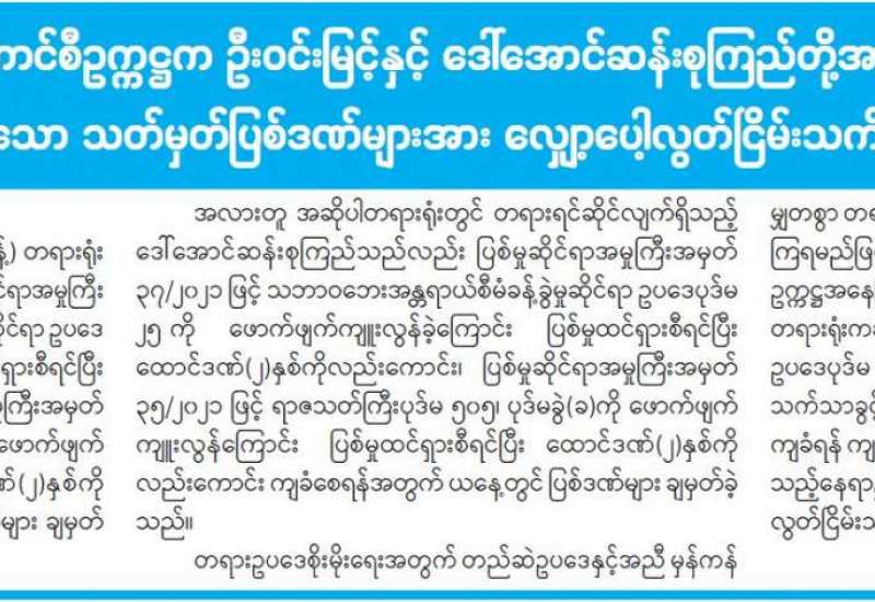 ပြည်ထောင်စုတရားသူကြီးချုပ် ဦးထွန်းထွန်းဦးနှင့် ပြည်ထောင်စုတရားလွှတ်တော်ချုပ် တရားသူကြီးများ ဖြစ်ကြသော ဦးမျိုးတင့်၊ ဦးကြည်သိန်း၊ ဦးတင်ဟုန်၊ ဒေါ်ခင်မေရီ တို့ပါဝင်သည့် အထူးအယူခံခုံရုံးသည် ယနေ့နံနက် ၉ နာရီခွဲတွင် ပြည်ထောင်စု တရားလွှတ်တော်ချုပ်၊ ရုံးခန်းအမှတ် (၁)၌ ရုံးထိုင်၍ တရားမအထူးအယူခံမှုအမှတ် ၃/၂၀၂၀ (မန္တလေး)၊ ၆/၂၀၂၀ (မန္တလေး)၊ ၉/၂၀၂၀ (ကရင်)၊ နှင့် ၁၂/၂၀၂၀(ရန်ကုန်)၊ စုစုပေါင်း တရားမအထူး အယူခံမှု (၄) မှုကို စီရင်ချက် ချမှတ်သည်။