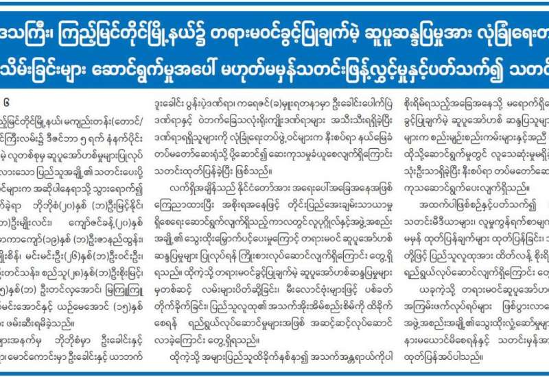 မန္တလေးတိုင်းဒေသကြီး၊ နွားထိုးကြီးမြို့နယ်၌ PDF အမည်ခံအကြမ်းဖက်သမားများ၏ ရက်စက်စွာ သတ်ဖြတ်မီးရှို့ခဲ့မှုကြောင့် ကျေးရွာအုပ်ချုပ်ရေးမှူးအပါအဝင် အမျိုးသားသုံးဦးနှင့် အမျိုးသမီးတစ်ဦးတို့ မီးလောင်သေဆုံးကာ အမျိုးသားတစ်ဦးနှင့် အမျိုးသမီးတစ်ဦး ဒဏ်ရာရရှိ ခဲ့ကြောင်း သိရသည်။