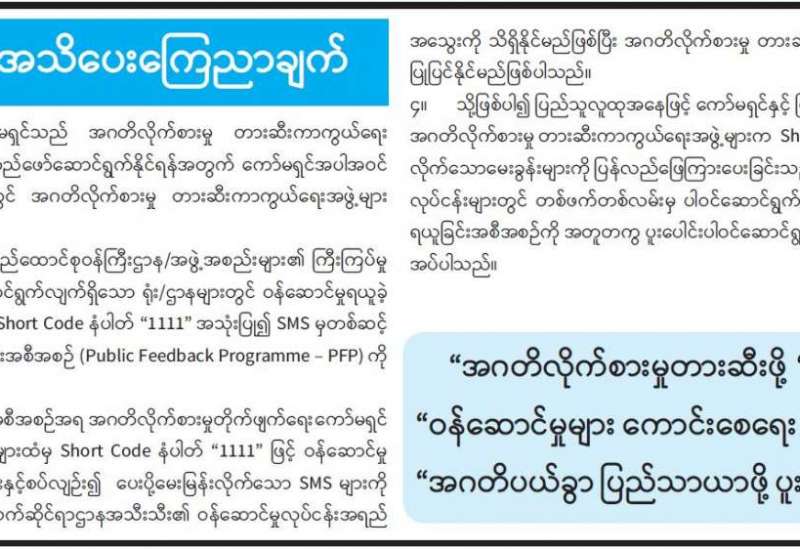 “ဒီမိုကရေစီစနစ်တွင် နိုင်ငံရေးအရ အချင်းချင်းသဘောထားကွဲလွဲမှုများ ရှိနိုင်သော်လည်း အများစု၏ ဆန္ဒသဘောထားကိုလည်း ထည့်သွင်းစဉ်းစား၍ ဆင်ခြင်ဆောက်ရွက်ရန်လိုကြောင်း၊ နိုင်ငံတော်၏ နိုင်ငံရေးလျှောက်လှမ်းမှုတွင် အဆင်ပြေချောမွေ့စေရန်အတွက် မိမိတို့က ဝိုင်းဝန်းဆောင်ရွက်နေခြင်းပင်ဖြစ်ကြောင်း” နိုင်ငံတော်စီမံအုပ်ချုပ်ရေးကောင်စီ ဥက္ကဋ္ဌ၊ နိုင်ငံတော်ဝန်ကြီးချုပ် ဗိုလ်ချုပ်မှူးကြီး မင်းအောင်လှိုင် က ဘာသာပေါင်းစုံ ချစ်ကြည်ညီညွတ်ရေးအဖွဲ့ (ဗဟို)ဥက္ကဋ္ဌနှင့် အလုပ်အမှုဆောင်များအား ဒီဇင်ဘာ ၅ ရက်က တွေ့ဆုံစဉ် ပြောကြားခဲ့သည်။