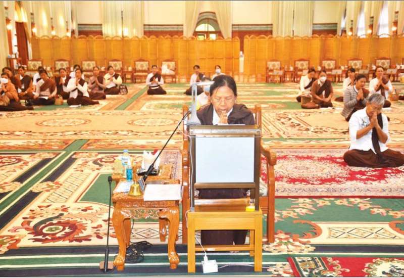 ကာကွယ်ရေးဦးစီးချုပ်ရုံး (ကြည်း၊ ရေ၊ လေ) မိသားစုဝတ်ရွတ်အဖွဲ့ဖြင့် အသံမစဲမဟာပဋ္ဌာန်းကျမ်း ငါးကျမ်း ရွတ်ဖတ်ပူဇော်ပွဲအောင်ပွဲကို ယနေ့နံနက်ပိုင်းတွင် ကာကွယ်ရေးဦးစီးချုပ်ရုံး(ကြည်း)၊ အနော်ရထာခန်းမ၌ ပြုလုပ်ရာ နိုင်ငံတော်စီမံအုပ်ချုပ်ရေးကောင်စီဥက္ကဋ္ဌ၊ နိုင်ငံတော်ဝန်ကြီးချုပ် ဗိုလ်ချုပ်မှူးကြီးမင်းအောင်လှိုင်၏ဇနီး ဒေါ်ကြူကြူလှ တက်ရောက်၍ သစ္စာပြုဆုတောင်း ရွတ်ဖတ်ပူဇော် အမျှဝေခဲ့သည်။ ထို့နောက် တက်ရောက်လာကြသူများနှင့်အတူ ဗုဒ္ဓသာသနံ စိရံတိဋ္ဌတု သုံးကြိမ်ရွတ်ဆိုကာ အခမ်းအနားကို ပိတ်သိမ်းခဲ့သည်။