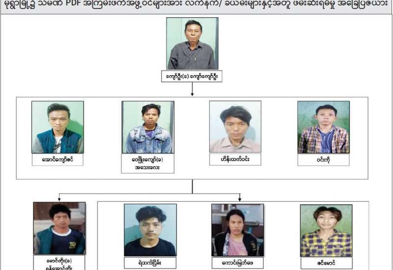 NUG အမည်ခံအကြမ်းဖက်အဖွဲ့၏ စေခိုင်းချက်အရ စက်ရုံ၊ အလုပ်ရုံများအား ဖောက်ခွဲဖျက်ဆီးခြင်းနှင့် အပြစ်မဲ့ပြည်သူများအား ပစ်မှတ်ထား၍ သတ်ဖြတ်ခြင်းတို့အား ဆောင်ရွက်မှုမရှိစေရေး ဖော်ထုတ်ဖမ်းဆီးမှုများ ဆောင်ရွက်လျက်ရှိရာ ၂၀၂၁ ခုနှစ်၊ နိုဝင်ဘာလ ၁၇ ရက်တွင် မုံရွာ သံမဏိ PDF အမည်ခံအကြမ်းဖက်အဖွဲ့နှင့် ပတ်သက် ဆက်သွယ်နေသော မုံရွာမြို့၊ အောင်ချမ်းသာရပ်ကွက်နေ ကျော်ဦး(ခ) ကျော်ကျော်ဦး (၄၇)နှစ်အား ဖမ်းဆီးရမိခဲ့ပြီး ၎င်း၏ ထွက်ဆိုချက်အရ နိုဝင်ဘာလ ၁၈ ရက်တွင် ချမ်းမြဝတီ ရပ်ကွက်၊ "အားသစ်" တည်းခိုခန်း၊ အခန်းအမှတ်(၃၀၁)၌ အောင်ကျော်ဇင် (၂၇)နှစ်၊ ဝေဖြိုးကျော်(ခ)အသေးလေး (၂၅)နှစ်၊ ဟိန်းထက်ဝင်း (၂၀)နှစ်နှင့် ဝင်းကို(၁၉)နှစ်တို့ ၄ ဦးအား ဖမ်းဆီးရမိခဲ့သည်။