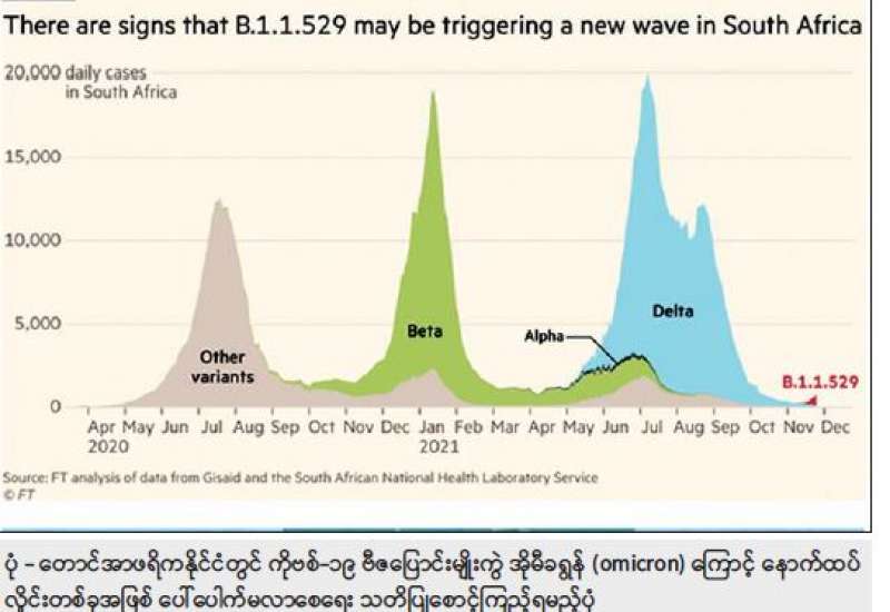 ပြည်သူများအနေဖြင့် ကိုဗစ်-၁၉ ဗီဇပြောင်းမျိုးကွဲ အိုမီခရွန် (omicron) (B.1.1.529) နှင့်ပတ်သက်၍ အထူးသတိပြုရမည့် အချက်အလက်များကို ကျယ်ကျယ်ပြန့်ပြန့် သိရှိစေရေးအတွက် သတင်းအဖွဲ့က ကျန်းမာရေးအသိပညာမြှင့်တင်ရေးဌာနမှ ဒေါက်တာသန်းနိုင်စိုးနှင့် တွေ့ဆုံမေးမြန်းထားသည်များကို တင်ပြလိုက်ပါသည်-