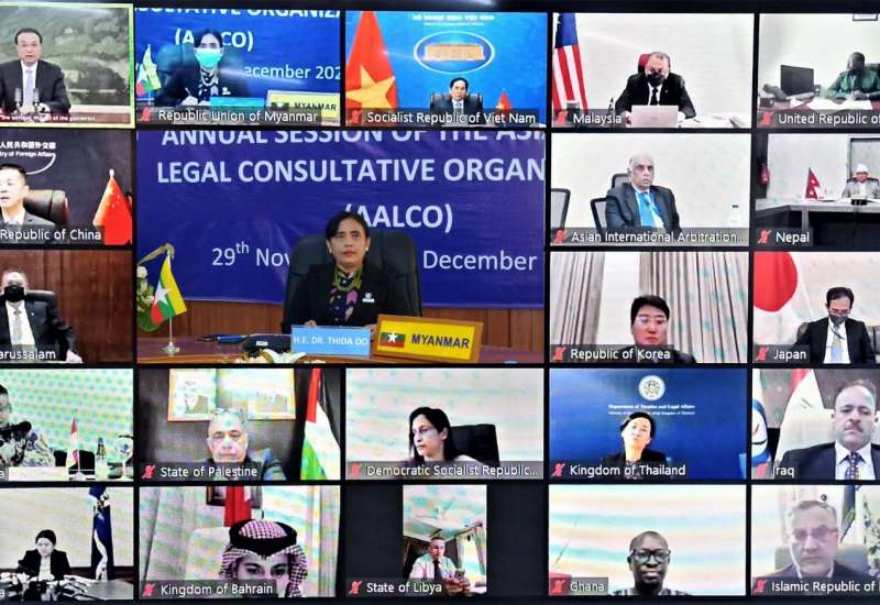 (၅၉) ကြိမ်မြောက် အာရှ - အာဖရိက ဥပဒေအတိုင်ပင်ခံအဖွဲ့ (Asian - African Legal Consultative Organization-AALCO) အစည်းအဝေးကို ဗီဒီယိုကွန်ဖရင့်ဖြင့် ယနေ့မှ စတင်၍ တရုတ်ပြည်သူ့သမ္မတ နိုင်ငံက အိမ်ရှင်အဖြစ် လက်ခံကျင်းပလျက်ရှိရာ အဆိုပါ အစည်းအဝေးသို့ အဖွဲ့ဝင်နိုင်ငံများမှ ကိုယ်စားလှယ်များနှင့်အတူ ဥပဒေရေးရာ ဝန်ကြီးဌာန၊ ပြည်ထောင်စုဝန်ကြီးနှင့် ပြည်ထောင်စုရှေ့နေချုပ် ဒေါက်တာသီတာဦး ဦးဆောင်သည့် မြန်မာကိုယ်စားလှယ်အဖွဲ့ တက်ရောက်ကြသည်။