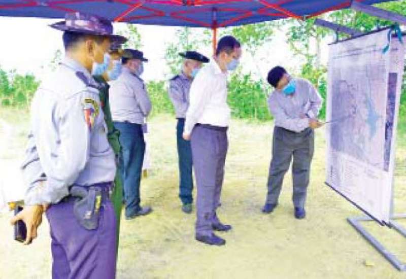 သယံဇာတနှင့် သဘာဝပတ်ဝန်းကျင် ထိန်းသိမ်းရေးဝန်ကြီးဌာန ပြည်ထောင်စုဝန်ကြီး ဦးခင်မောင်ရီ သည် ယနေ့ မွန်းလွဲပိုင်းတွင် ပြည်ထောင်စု နယ်မြေ (နေပြည်တော်) တပ်ကုန်းမြို့ နယ်ရှိ ဆင်သေဆည် ရေဝေရေလဲ ဧရိယာသို့ သွားရောက်စစ်ဆေးရာ တာဝန်ရှိသူများက လုပ်ငန်းအစီ အမံများကို ရှင်းလင်းတင်ပြသည်။