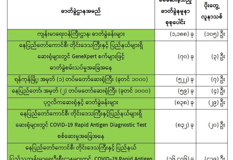 ကျန်းမာရေးဝန်ကြီးဌာနအနေဖြင့် နိုင်ငံအတွင်း ကူးစက်ဖြစ်ပွားနေသော COVID-19 ရောဂါ ကာကွယ်၊ ကုသ၊ ထိန်းချုပ်ရေး လုပ်ငန်းများကို အရှိန်အဟုန်မြှင့် ဆောင်ရွက်လျက်ရှိရာ ရောဂါ ထိန်းချုပ်ရေးလုပ်ငန်းများ အောင်မြင်နိုင်ရေးအတွက် ပြည်သူလူထု အနေဖြင့် -