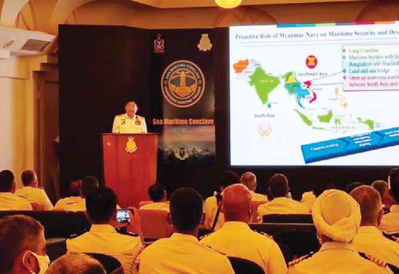 အိန္ဒိယနိုင်ငံ၊ ဂိုအာမြို့တွင် (၃) ကြိမ်မြောက် Goa Maritime Conclave 2021 (GMC-2021) ကို နိုဝင်ဘာလ ၇ ရက်နေ့မှ ၉ ရက်နေ့အထိ ကျင်းပပြုလုပ်ခဲ့ရာ ကာကွယ်ရေးဦးစီးချုပ်(ရေ) ဗိုလ်ချုပ်ကြီးမိုးအောင် ဦးဆောင်သည့်ကိုယ်စားလှယ် အဖွဲ့တက်ရောက်ခဲ့သည်။
