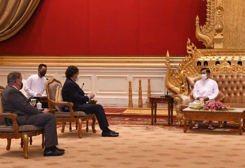 နိုင်ငံတော်စီမံအုပ်ချုပ်ရေးကောင်စီဥက္ကဋ္ဌ နိုင်ငံတော်ဝန်ကြီးချုပ် ဗိုလ်ချုပ်မှူးကြီး မင်းအောင်လှိုင်သည် အမေရိကန်နိုင်ငံ၊ နယူးမက္ကဆီကိုပြည်နယ် အုပ်ချုပ်ရေးမှူးဟောင်း မစ္စတာဘီလ်ရစ်ချတ်ဆန်အား ယနေ့မွန်းလွဲပိုင်းတွင် နေပြည်တော်ရှိ နိုင်ငံတော်စီမံအုပ်ချုပ်ရေးကောင်စီဥက္ကဋ္ဌရုံး၊ သံတမန်ဆောင် ဧည့်ခန်းမ၌ လက်ခံတွေ့ဆုံသည်။