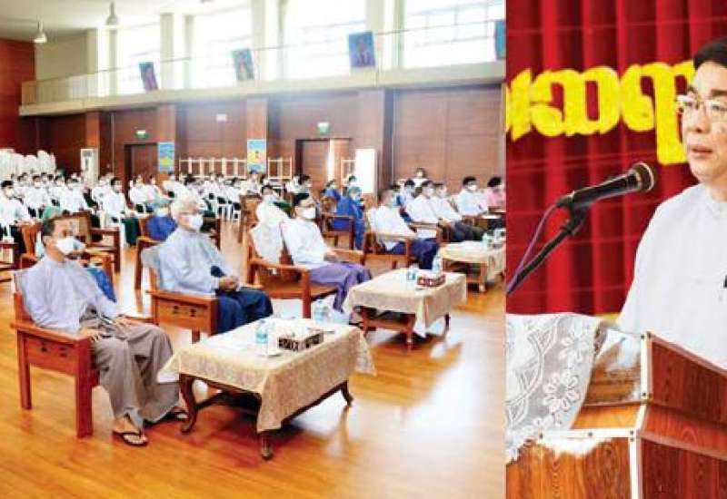 မြန်မာနိုင်ငံ၏ ခရီးသွားလုပ်ငန်းများ ပြန်လည်စတင်နိုင်ရေး စီမံချက်အား အကောင်အထည် ဖော်နိုင်ရေးအတွက် သက်ဆိုင်ရာ ဆက်စပ်ဝန်ကြီးဋ္ဌာနများ၊ မြန်မာ နိုင်ငံခရီးသွားလုပ်ငန်း အဖွဲ့ချုပ်နှင့် ညီနောင်အသင်းများနှင့် ညှိနှိုင်းအစည်း အဝေးကို ယနေ့ နံနက်ပိုင်းတွင် ဟိုတယ်နှင့်ခရီးသွားလာ ရေးဝန်ကြီးဋ္ဌာန နီလာအစည်းအဝေးခန်းမ၌ ဗီဒီယိုကွန်ဖရင့်စနစ်ဖြင့် ကျင်းပသည်။