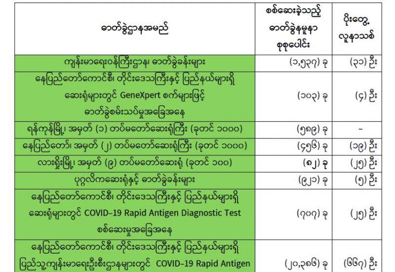 ကျန်းမာရေးဝန်ကြီးဌာနအနေဖြင့် နိုင်ငံအတွင်း ကူးစက်ဖြစ်ပွားနေသော COVID-19 ရောဂါ ကာကွယ်၊ ကုသ၊ ထိန်းချုပ်ရေးလုပ်ငန်းများကို အရှိန်အဟုန်မြှင့်ဆောင်ရွက်လျက်ရှိရာ ရောဂါထိန်းချုပ်ရေး လုပ်ငန်းများ အောင်မြင်နိုင်ရေးအတွက် ပြည်သူလူထုအနေဖြင့် -