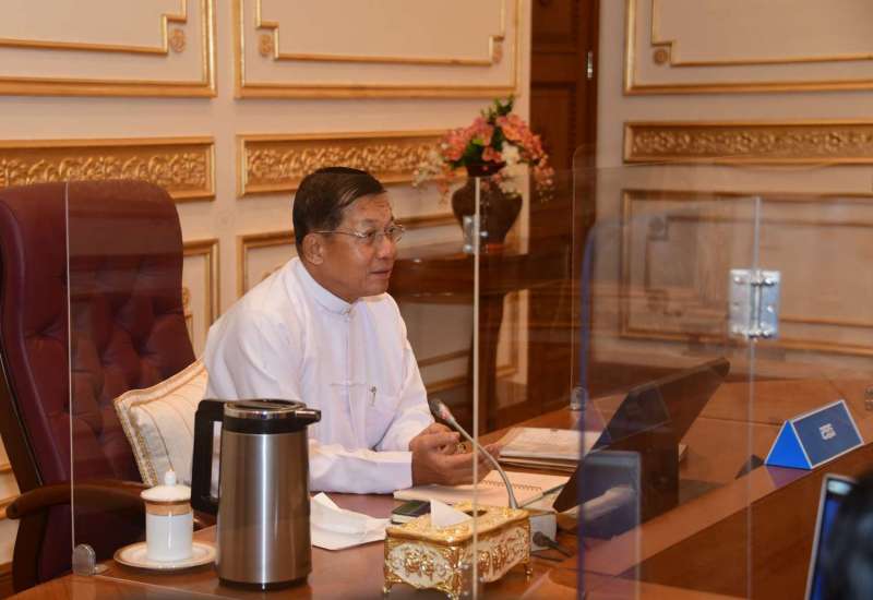 နိုင်ငံတော်စီမံအုပ်ချုပ်ရေးကောင်စီအစည်းအဝေး (၁၇/၂၀၂၁)ကို ယနေ့မွန်းလွဲပိုင်းတွင် နေပြည်တော်ရှိ နိုင်ငံတော်စီမံအုပ်ချုပ်ရေးကောင်စီဥက္ကဋ္ဌရုံး အစည်းအဝေးခန်းမ၌ ကျင်းပရာ နိုင်ငံတော်စီမံအုပ်ချုပ်ရေးကောင်စီဥက္ကဋ္ဌ၊ နိုင်ငံတော်ဝန်ကြီးချုပ် ဗိုလ်ချုပ်မှူးကြီး မင်းအောင်လှိုင် တက်ရောက်အမှာစကားပြောကြားသည်။
