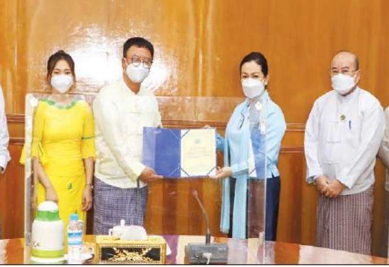 လူမှုဝန်ထမ်း၊ ကယ်ဆယ်ရေးနှင့်ပြန်လည်နေရာချထားရေးဝန်ကြီးဌာနသို့ Myanmar Royal Fortune ကုမ္ပဏီနှင့် Myanmar Royal Golden Elephant Medical Device ကုမ္ပဏီတို့က အနွေးထည် ၄၀၀၀ ကို ယနေ့နံနက်ပိုင်းတွင် လာရောက်ပေးအပ်လှူဒါန်းရာ ပြည်ထောင်စုဝန်ကြီး ဒေါက်တာသက်သက်ခိုင်က လက်ခံရယူပြီး ဂုဏ်ပြုမှတ်တမ်းလွှာ ပြန်လည်ပေးအပ်သည်။