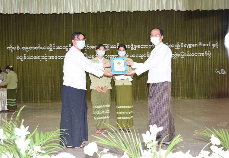 ပဲခူးတိုင်းဒေသကြီးအစိုးရအဖွဲ့က ထောက်ပံ့ပေးခဲ့သည့် Oxygen Plant များနှင့် ကိုဗစ်-၁၉ ရောဂါကာကွယ်ရေးပစ္စည်းများ ကျန်းမာရေးဝန်ကြီးဌာနသို့ လွှဲပြောင်းပေးအပ်ပွဲ အခမ်းအနားကို ယမန်နေ့ နံနက် ၁၀ နာရီ က ပဲခူးမြို့၊ မြို့တော်ခန်းမ၌ ကျင်းပရာ ပြည်ထောင်စုဝန်ကြီး ဒေါက်တာသက်ခိုင်ဝင်း တက်ရောက်အမှာစကား ပြောကြားသည်။
