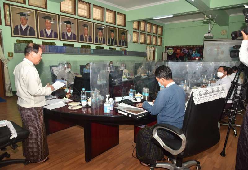 နိုင်ငံတော်သံဃမဟာနာယကအဖွဲ့၏ နိုင်ငံတော်ပရိယတ္တိသာသနာ့တက္ကသိုလ်များ အုပ်ချုပ်ရေးဗဟိုအဖွဲ့(၁/၂၀၂၁) အစည်းအဝေး ကို ယနေ့နံနက် ၉ နာရီတွင် ရန်ကုန်မြို့ ကမ္ဘာအေးကုန်း မြေရှိ နိုင်ငံတော်ပရိယတ္တိသာသနာ့တက္ကသိုလ် (ရန်ကုန်)ဘွဲ့နှင်းသိမ် ဓမ္မာရုံ၌ ကျင်းပသည်။