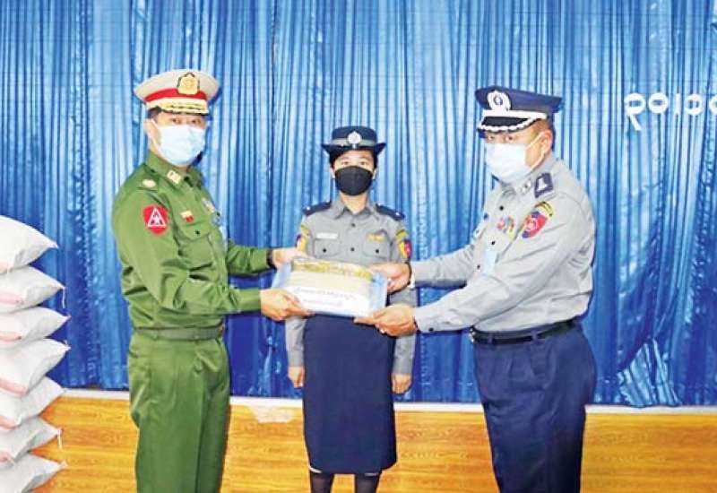 စစ်မှုထမ်းဟောင်း အဖွဲ့ဝင်များ၊ မြန်မာနိုင်ငံ ရဲတပ်ဖွဲ့ဝင်များ၊ မီးသတ်တပ်ဖွဲ့ဝင်များ၊ ပရဟိတ အသင်းအဖွဲ့များ စားရေးအဆင် ပြေစေရေးအတွက် တပ်မတော် နှင့် စေတနာရှင် အလှူရှင်များ | က စားသောက်ဖွယ်ရာများ၊ ထောက်ပံ့ငွေများနှင့် ရောဂါ ကာကွယ်ရေးအထောက်အကူပြု ပစ္စည်းများကို ထောက်ပံ့လှူဒါန်း လျက်ရှိသည်။