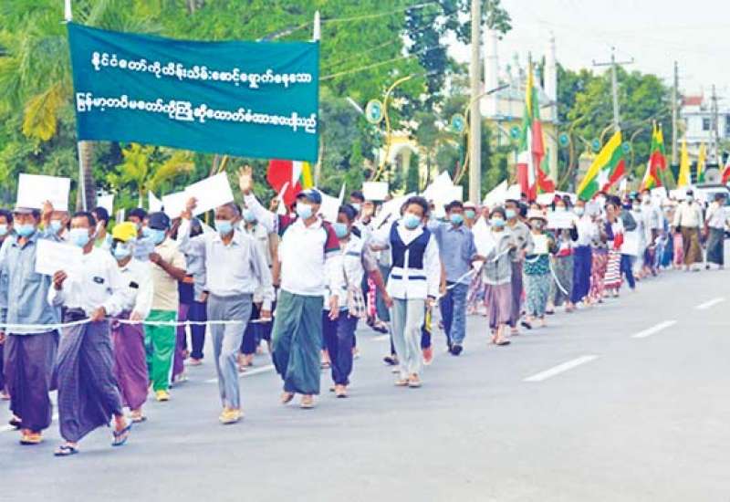 ၂၀၀၈ ခုနှစ် ဖွဲ့စည်းပုံအခြေခံဥပဒေနှင့်အညီ ဆောင်ရွက်လျက်ရှိသည့် နိုင်ငံတော်စီမံအုပ်ချုပ်ရေး ကောင်စီအား ထောက်ခံပွဲကို ယနေ့တွင် ကချင် ပြည်နယ် မြစ်ကြီးနားမြို့၊ ကရင်ပြည်နယ် ဘားအံမြို့၊ ရန်ကုန်တိုင်းဒေသကြီး ဒဂုံမြို့နယ်၊ ဧရာဝတီတိုင်း ဒေသကြီး ကန်ကြီးထောင့်မြို့၊ သာပေါင်းမြို့၊ လပွတ္တာမြို့၊ ဒေးဒရဲမြို့၊ စစ်ကိုင်းတိုင်းဒေသကြီး မုံရွာမြို့နှင့် ပဲခူးတိုင်းဒေသကြီး မိုးညိုမြို့တို့၌ အသီးသီး ပြုလုပ်ကြပြီး ဆန္ဒဖော်ထုတ်ခဲ့ကြသည်။