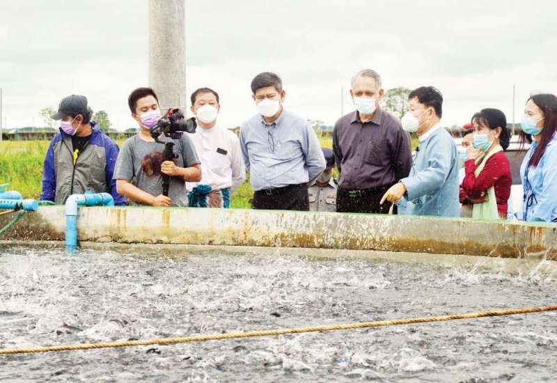 ရင်းနှီးမြှုပ်နှံမှုနှင့် နိုင်ငံခြားစီးပွားဆက်သွယ်ရေးဝန်ကြီးဌာန ပြည်ထောင်စုဝန်ကြီး ဦးအောင်နိုင်ဦးသည် ယနေ့နံနက်ပိုင်းက ဧရာဝတီတိုင်းဒေသကြီး၊ ပန်းတနော်မြို့နယ်၊ ဘုရားကျောင်းကျေးရွာတွင် မြန်မာနိုင်ငံရင်းနှီးမြှုပ်နှံမှုကော်မရှင်၏ ခွင့်ပြုမိန့်ဖြင့် ငါးမွေးမြူခြင်း၊ ပြုပြင်ထုတ်လုပ်ခြင်း၊ အေးခဲခြင်းနှင့် ဆက်စပ်သောလုပ်ငန်းများ လုပ်ကိုင် လျက်ရှိသည့် Global Earth Agro & Aqua Industry Public Company Limited (GEAA)၏ ရင်းနှီးမြှုပ်နှံမှုလုပ်ငန်းသို့ သွားရောက်ကြည့်ရှု အားပေးသည်။
