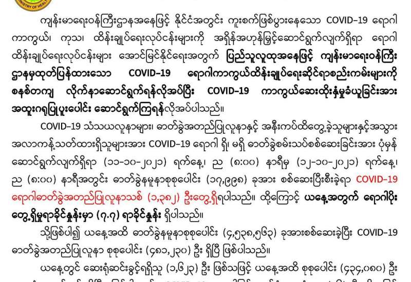 COVID-19 ရောဂါစောင့်ကြပ်ကြည့်ရှုမှုနှင့်ပတ်သက်၍ သတင်းထုတ်ပြန်ခြင်း (၁၂-၁၀-၂၀၂၁) ရက်နေ့၊ ည (၈:၀၀)နာရီ