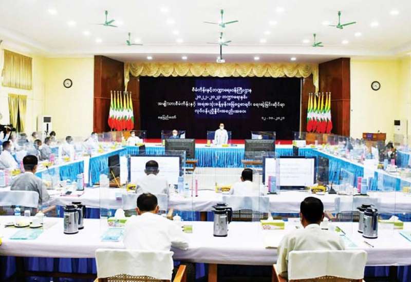 ၂၀၂-၂၀၂၃ ဘဏ္ဍာရေးနှစ်၊ အမျိုးသားစီမံကိန်းနှင့် အရအသုံး ခန့်မှန်းခြေငွေစာရင်းရေးဆွဲခြင်း ဆိုင်ရာ ညှိနှိုင်းအစည်းအဝေးကို ယနေ့မွန်းလွဲ ၁ နာရီတွင် စီမံကိန်းနှင့် ဘဏ္ဍာရေးဝန်ကြီးဌာန အစည်းအဝေးခန်းမ၌ ကျင်းပရာ ပြည်ထောင်စုဝန်ကြီးများ၊ ပြည်ထောင်စုစာရင်းစစ်ချုပ်၊ ဒုတိယ ဝန်ကြီးများ၊ အမြဲတမ်း အတွင်းဝန်များနှင့် ညွှန်ကြား ရေးမှူးချုပ်များ တက်ရောက်ကြသည်။