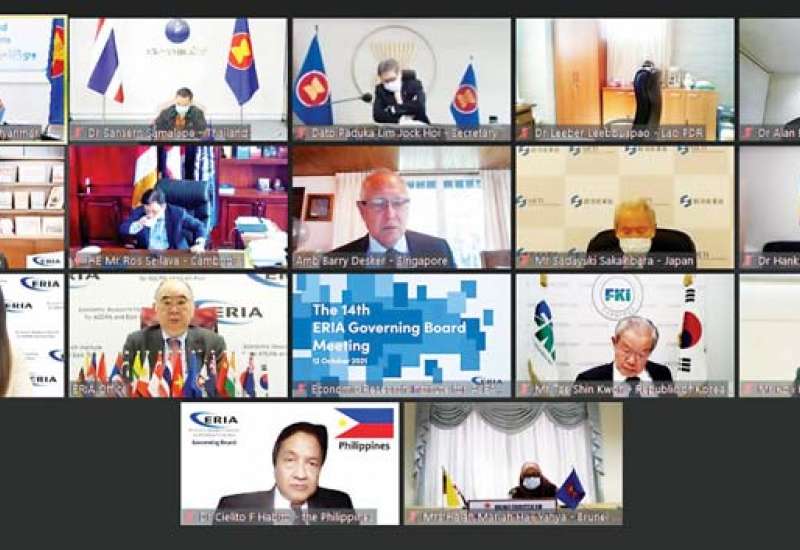 (၁၄) ကြိမ်မြောက် အာဆီယံနှင့် အရှေ့အာရှ စီးပွားရေးသုတေသနဌာန (ERIA) အုပ်ချုပ်မှုဘုတ်အဖွဲ့ အစည်း အဝေးကို ယနေ့ မွန်းလွဲပိုင်းက ဗီဒီယိုကွန်ဖရင့်စနစ်ဖြင့် ကျင်းပရာ မြန်မာနိုင်ငံ၏ အီးအာရ်အိုင်အေအုပ်ချုပ်မှု ဘုတ်အဖွဲ့ဝင်၊ ရင်းနှီးမြှုပ်နှံမှုနှင့် နိုင်ငံခြားစီးပွား ဆက်သွယ်ရေးဝန်ကြီးဌာန ဒုတိယဝန်ကြီး ဦးသန်း အောင်ကျော်သည် ရင်းနှီးမြှုပ်နှံမှုနှင့် နိုင်ငံခြားစီးပွားဆက်သွယ်ရေး ဝန်ကြီးဌာနမှ ပါဝင်တက်ရောက်သည်။