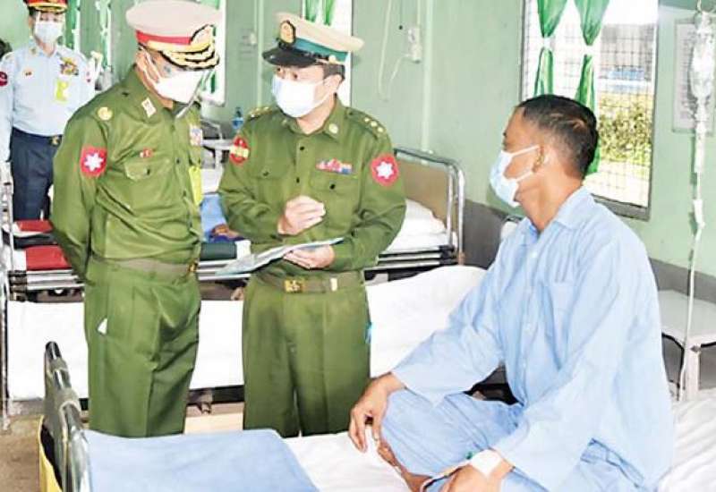 ဧရာဝတီတိုင်းဒေသကြီး ပုသိမ်မြို့ရှိ တပ်မတော်ဆေးရုံ၌ တက်ရောက်ကုသမှုခံယူလျက်ရှိသော အရာရှိ၊ စစ်သည်၊ မိသားစုများနှင့် ဒေသခံပြည်သူများကို ယနေ့မွန်းလွဲပိုင်းတွင် အနောက်တောင်တိုင်း စစ်ဌာနချုပ်တိုင်းမှူး ဗိုလ်ချုပ် အောင်အောင်နှင့် အဖွဲ့ဝင်များက သွားရောက်ကြည့်ရှု၍ တစ်ဦးချင်း၏ ရောဂါဖြစ်ပွားမှု၊ ဆေးကုသပေး ထားမှုနှင့် ကျန်းမာရေး တိုးတက်မှုအခြေအနေများကို ရင်းရင်းနှီးနှီး မေးမြန်း အားပေးစကားပြောကြားပြီး စားသောက် ဖွယ်ရာများပေးအပ်သည်။