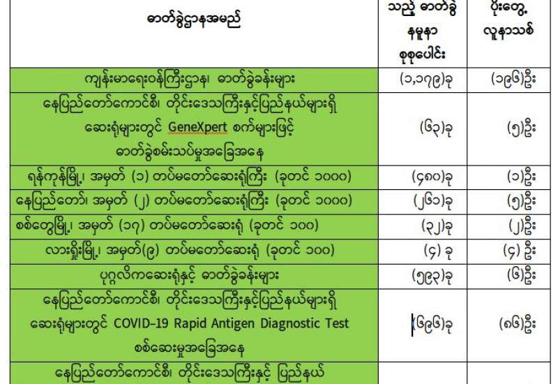 ကျန်းမာရေးဝန်ကြီးဌာနအနေဖြင့် နိုင်ငံအတွင်း ကူးစက်ဖြစ်ပွားနေသော COVID-19 ရောဂါ ကာကွယ်၊ ကုသ၊ ထိန်းချုပ်ရေးလုပ်ငန်းများကို အရှိန်အဟုန်မြှင့်ဆောင် ရွက်လျက်ရှိရာ ရောဂါ ထိန်းချုပ်ရေးလုပ်ငန်းများ အောင်မြင်နိုင်ရေးအတွက် ပြည်သူလူထုအနေဖြင့် ကျန်းမာရေးဝန်ကြီး ဌာနမှ ထုတ်ပြန်ထားသော COVID-19 ရောဂါကာကွယ်ထိန်းချုပ်ရေးဆိုင်ရာ စည်းကမ်းများကို စနစ်တကျ လိုက်နာဆောင်ရွက်ရန်လိုအပ်ပြီး COVID-19 ကာကွယ်ဆေးထိုးနှံမှုခံယူခြင်းအား အထူး ဂရုပြု ပူးပေါင်းဆောင်ရွက်ကြရန်လိုအပ်ပါသည်။
