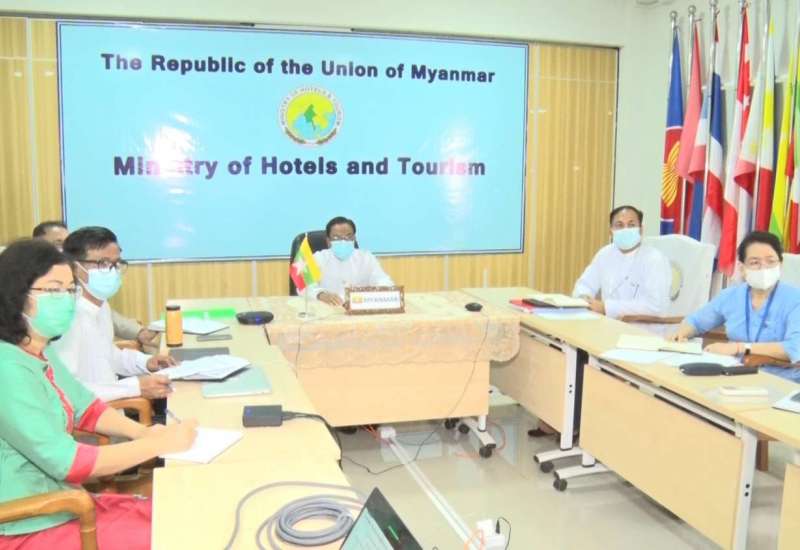 ဟိုတယ်နှင့် ခရီးသွားလာရေးဝန်ကြီးဌာန ပြည်ထောင်စုဝန်ကြီး ဒေါက်တာဌေးအောင်သည် ယနေ့နံနက် ၉ နာရီခွဲတွင် ကိုဗစ်-၁၉ ကာလအလွန်တွင် ခရီးစဉ်ဒေသများ ပြန်လည် စတင်နိုင်ရန်အတွက်ရည်ရွယ်၍ ပစိဖိတ်-အာရှ ခရီးသွား လုပ်ငန်းအဖွဲ့ (PATA) နှင့် ကမ္ဘာ့ ဘဏ် (World Bank) တို့မှ ကြီးမှူးပြီး COVID-19 Destination Recovery Insights Exchange- Session 3 ဆွေးနွေးပွဲသို့ နေပြည်တော်ရှိ ဟိုတယ်နှင့် ခရီးသွားလာရေးဝန်ကြီးဌာနမှ ဗီဒီယိုကွန်ဖရင့် စနစ်ဖြင့် ပါဝင်တက်ရောက်သည်။