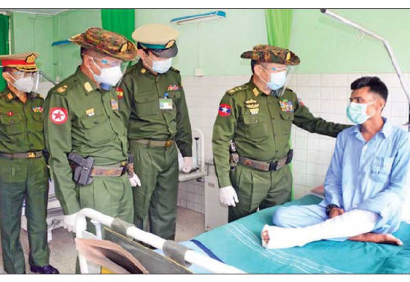စစ်ကိုင်းတိုင်းဒေသကြီး မုံရွာမြို့ရှိ တပ်မတော်ဆေးရုံ၌ တက်ရောက် ဆေးကုသမှု ခံယူလျက်ရှိသော အရာရှိ၊ စစ်သည်၊ မိသားစုဝင်များ၊ စစ်မှုထမ်းဟောင်း အဖွဲ့ဝင်များနှင့် ဒေသခံပြည်သူများအား ကာကွယ်ရေးဦးစီးချုပ်ရုံး(ကြည်း)မှ ဒုတိယဗိုလ်ချုပ်ကြီး တေဇကျော် နှင့်အဖွဲ့ဝင်များက လည်းကောင်း၊ ရန်ကုန်တိုင်းဒေသကြီး မင်္ဂလာဒုံမြို့နယ်ရှိ တပ်မတော် အရိုးရောဂါကုဆေးရုံကြီး၌ တက်ရောက် ဆေးကုသမှုခံယူလျက်ရှိသော အရာရှိ၊ စစ်သည်များအား ကာကွယ်ရေးဦးစီးချုပ်ရုံး(ကြည်း)မှ ဒုတိယဗိုလ်ချုပ်ကြီး သက်ပုံ၊ ရန်ကုန်တိုင်းစစ်ဌာနချုပ် တိုင်းမှူး ဗိုလ်ချုပ် ညွန့်ဝင်းဆွေနှင့် အဖွဲ့ဝင်များက လည်းကောင်း ယနေ့တွင် သွားရောက်ကာ ကြည့်ရှုအားပေး၍ တစ်ဦးချင်း၏ ရောဂါဖြစ်ပွားမှု၊ ဆေးဝါးကုသပေးထားမှုနှင့် ကျန်းမာရေး တိုးတက် ကောင်းမွန်မှု အခြေအနေများကို မေးမြန်းအားပေးစကား ပြောကြားပြီး စားသောက်ဖွယ်ရာများ ပေးအပ် သည်။