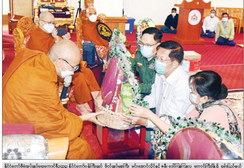 နိုင်ငံတော်စီမံအုပ်ချုပ်ရေးကောင်စီဥက္ကဋ္ဌ၊ နိုင်ငံတော်ဝန်ကြီးချုပ် ဗိုလ်ချုပ်မှူးကြီး မင်းအောင်လှိုင်သည် ယနေ့ နံနက်ပိုင်းတွင် ဇနီးဒေါ်ကြူကြူလှ၊ နိုင်ငံတော်စီမံအုပ်ချုပ်ရေး ကောင်စီ အဖွဲ့ဝင်များ၊ ပြည်ထောင်စုဝန်ကြီးများ၊ ရှမ်းပြည်နယ်ဝန်ကြီးချုပ်၊ ကာကွယ်ရေး ဦးစီးချုပ်ရုံးမှ တပ်မတော် အရာရှိကြီးများနှင့် ဇနီးများ၊ အရှေ့ပိုင်းတိုင်းစစ်ဌာနချုပ် တိုင်းမှူးနှင့် တာဝန်ရှိသူများ လိုက်ပါ၍ ရှမ်းပြည်နယ် (တောင်ပိုင်း)၊ တောင်ကြီးမြို့၊ ပန်းတင်ကျေးရွာအုပ်စု၊ ဘုရားဖြူရပ်ကွက်ရှိ ရှမ်းပြည်နယ် ဗုဒ္ဓတက္ကသိုလ် (Shan State Buddish University)သို့ သွားရောက်၍ ကမ္ဘာ့ဗုဒ္ဓသာသနာပြု အောက်စဖိုဒ့် ဆရာတော်အား ဖူးမြော်ကြည်ညိုပြီး လှူဖွယ် ပစ္စည်းများ ဆက်ကပ်လှူဒါန်းသည်။