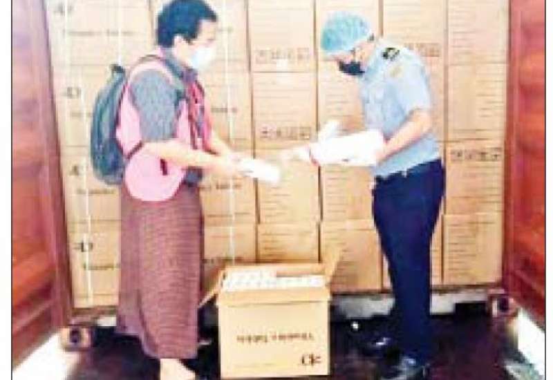 အကောက်အခွန်ဦးစီးဌာနအနေဖြင့် ကိုဗစ်-၁၉ ရောဂါ ကာကွယ် ထိန်းချုပ် ကုသရေးပစ္စည်းများအား ရေကြောင်း၊ လေကြောင်း၊ ဆိပ်ကမ်း၊ နယ်စပ်ဂိတ်အသီးသီးမှ နေ့စဉ် လွယ်ကူချောမွေ့စွာ စစ်ဆေးထုတ်ပေးလျက်ရှိရာ ယနေ့တွင် ရန်ကုန်အပြည်ပြည်ဆိုင်ရာလေဆိပ်၌ ကုမ္ပဏီ ၁၁ ခုမှ Cefoperazone ၁၇၀၀၀၊ Enoxa ၈၀၀၀၊ Dexamethasone Acetate ၈၇၊ Meropenem Trihydrate Powder For Injection ၅၀၀၀၊ Cefixime Dispersible Tablets ၄၉၉၀၊ Virus Shutout Lanyard ၄၀၀၀၊ Oxygen Filling Compressor နှစ်ခု၊ Test Kit ၄၇၇ ခု၊