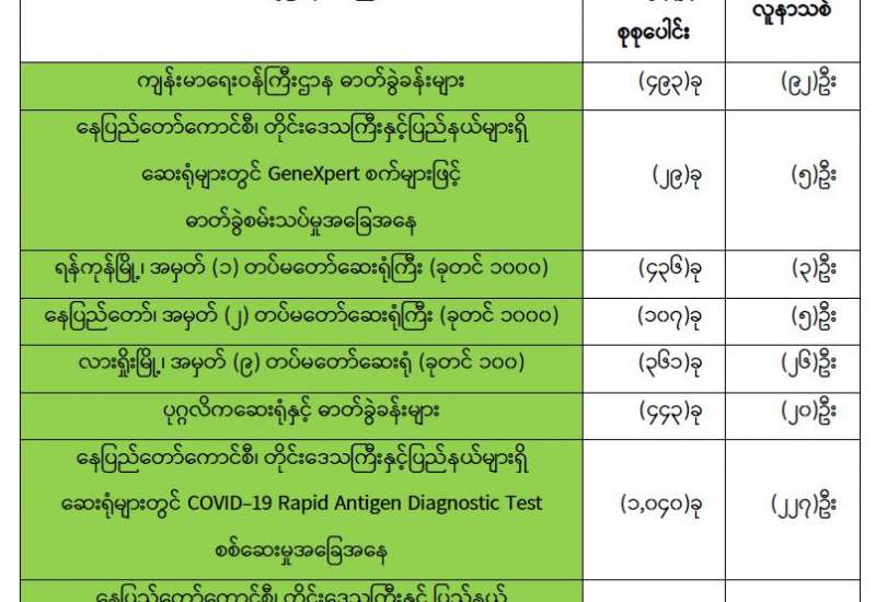 အကောက်ခွန်ဦးစီးဌာနအနေဖြင့် ကိုဗစ်-၁၉ ရောဂါ ကာကွယ်၊ ထိန်းချုပ်၊ ကုသရေး ဆေးနှင့်ပစ္စည်းများအား ရေကြောင်း၊ လေကြောင်း၊ နယ်စပ် ဂိတ်အသီးသီးမှ ရုံးပိတ်ရက်ရှည် ကာလအတွင်း နေ့စဉ်ရုံးပိတ်ရက်မရှိ လွယ်ကူချောမွေ့စွာ စစ်ဆေးထုတ်ပေး လျက်ရှိသည်။