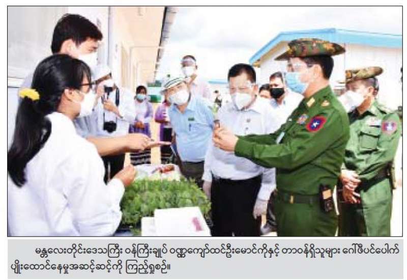 မန္တလေးတိုင်းဒေသကြီး ဝန်ကြီးချုပ် ဝဏ္ဏကျော်ထင် ဦးမောင်ကို၊ အလယ်ပိုင်းတိုင်းစစ်ဌာနချုပ် တိုင်းမှူး ဗိုလ်ချုပ်ကိုကိုဦးတို့သည် တိုင်းဒေသကြီးဝန်ကြီးများ နှင့်အတူ ပြင်ဦးလွင်မြို့နယ် သက္ကံချိုင်းကျေးရွာရှိ Haewoo Myanmar Co.,Ltd Dextrose Monohydrate ဂေါ်ဖီထုပ်၊ မုန်လာဥနီအခြောက်ခံ စက်ရုံသို့ ယနေ့ နံနက် ၁၀ နာရီခွဲက ရောက်ရှိလာရာ မန္တလေးတိုင်းဒေသကြီး စိုက်ပျိုးရေးဦးစီးဌာနမှ ညွှန်ကြားရေးမှူး ဦးတိုးမင်းနှင့် စက်ရုံမှတာဝန်ရှိသူများက ကြိုဆို နှုတ်ဆက်ကြသည်။