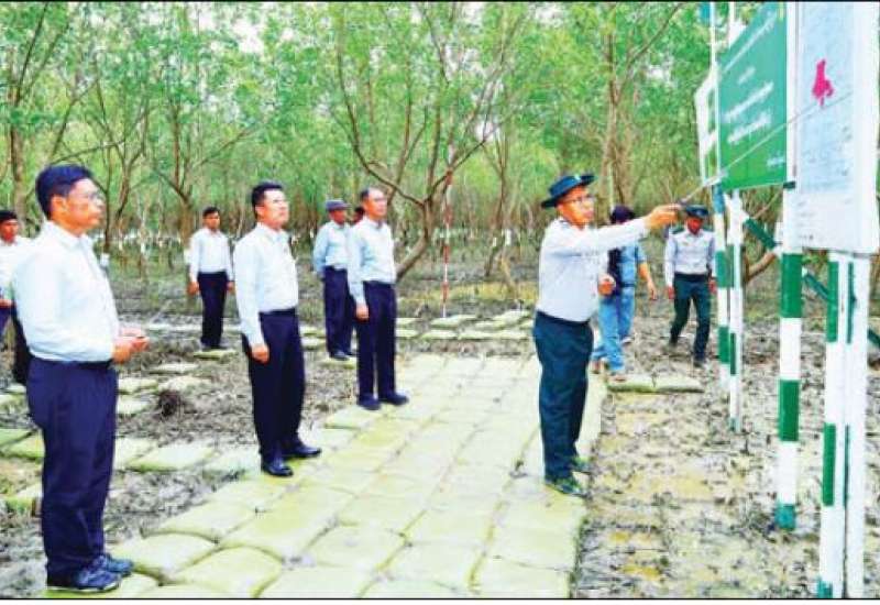 သယံဇာတနှင့်သဘာဝပတ်ဝန်းကျင်ထိန်းသိမ်းရေးဝန်ကြီးဌာန ပြည်ထောင်စုဝန်ကြီး ဦးခင်မောင်ရီသည် ဧရာဝတီတိုင်းဒေသကြီးဝန်ကြီးချုပ် ဦးတင်မောင်ဝင်း၊ တိုင်းဒေသကြီးဝန်ကြီးများ၊ တာဝန်ရှိသူများနှင့်အတူ ယမန်နေ့နံနက်ပိုင်းက ဧရာဝတီတိုင်းဒေသကြီး ဘိုကလေးမြို့နယ်ရှိ ဒီရေတောစိုက်ခင်းများ ရှင်သန်အောင်မြင်နေမှုကို ကွင်းဆင်းကြည့်ရှုသည်။