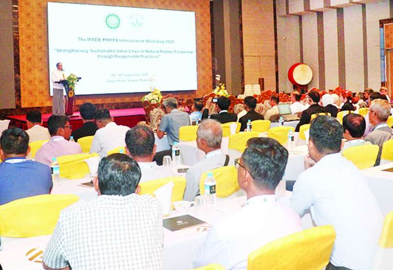 ရော်ဘာတန်ဖိုးကွင်းဆက်တစ်လျှောက် သဘာဝပတ်ဝန်းကျင်ဆိုင်ရာနှင့် လူမှုစီးပွားရေးဆိုင်ရာ ဘေးအန္တရာယ်ကင်းရှင်းရေး အစီအမံများ၊ ပွင့်လင်းမြင်သာမှုနှင့် နောက်ခံအချက်အလက် ချိတ်ဆက်ခြေရာခံနိုင်မှုစနစ်များ ရေရှည်တည်တံ့ပြီး တာဝန်ယူမှု၊ တာဝန်ခံမှုရှိသော အလေ့အကျင့်ကောင်းများ လိုက်နာဆောင်ရွက်မှုအတွေ့အကြုံများကို IRRDB အဖွဲ့ဝင်နိုင်ငံများ အချင်းချင်းမျှဝေဖလှယ်ရန် ရည်ရွယ်ကျင်းပသည့် “Strengthening Sustain-able Value Chain in Natural Rubber Production through Responsible Practices" အပြည်ပြည်ဆိုင်ရာ အလုပ်ရုံဆွေးနွေးပွဲကို ယနေ့နံနက်ပိုင်းက ရန်ကုန်မြို့ အလုံမြို့နယ်ရှိ Zealax Hotel Yangon ၌ ကျင်းပသည်။