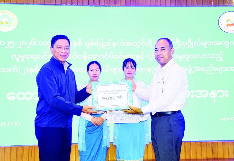 ၂၀၂၅-၂၀၂၆ ဘဏ္ဍာနှစ်အတွက် ရှမ်းပြည်နယ်အတွင်းရှိ အသက် ၈၅ နှစ်နှင့်အထက် သက်ကြီးပုဂ္ဂိုလ်များအား လူမှုရေးပင်စင်၊ ကိုယ်ဝန်ဆောင်မိခင်များနှင့် ၎င်းတို့မှမွေးဖွားသော ကလေးသူငယ်များနှင့် စေတနာ့ဝန်ထမ်းအဖွဲ့အစည်းများအတွက် ထောက်ပံ့ကြေးပေးအပ်ခြင်းကို ယနေ့နံနက်ပိုင်းတွင် ရှမ်းပြည်နယ် တောင်ကြီးမြို့ ပြည်နယ်အစိုးရအဖွဲ့ရုံးအစည်းအဝေးခန်းမ (၁) ၌ ကျင်းပသည်။