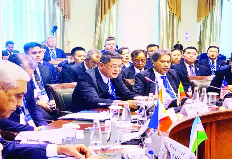 ရုရှားဖက်ဒရေးရှင်းနိုင်ငံသို့ အလုပ်သဘောခရီးရောက်ရှိနေသည့် ပြည်ထောင်စုသမ္မတမြန်မာနိုင်ငံတော် ယာယီသမ္မတ နိုင်ငံတော်လုံခြုံရေးနှင့် အေးချမ်းသာယာရေးကော်မရှင်ဥက္ကဋ္ဌ ဗိုလ်ချုပ်မှူးကြီး မင်းအောင်လှိုင်နှင့်အတူ လိုက်ပါလာသည့် ပြည်ထောင်စုဝန်ကြီးများသည် ရုရှားဖက်ဒရေးရှင်းနိုင်ငံ မော်စကိုမြို့၌ စက်တင်ဘာ ၂၆ ရက် ဒေသစံတော်ချိန် နေ့လယ်ပိုင်းက “အရာအားလုံးက အက်တမ်ကနေ စတင်တယ်” ဟူသော ခေါင်းစဉ်ဖြင့် ကျင်းပပြုလုပ်သည့် မျက်နှာစုံညီအစည်းအဝေးကို ပါဝင်တက်ရောက်ခဲ့ကြောင်း သိရသည်။