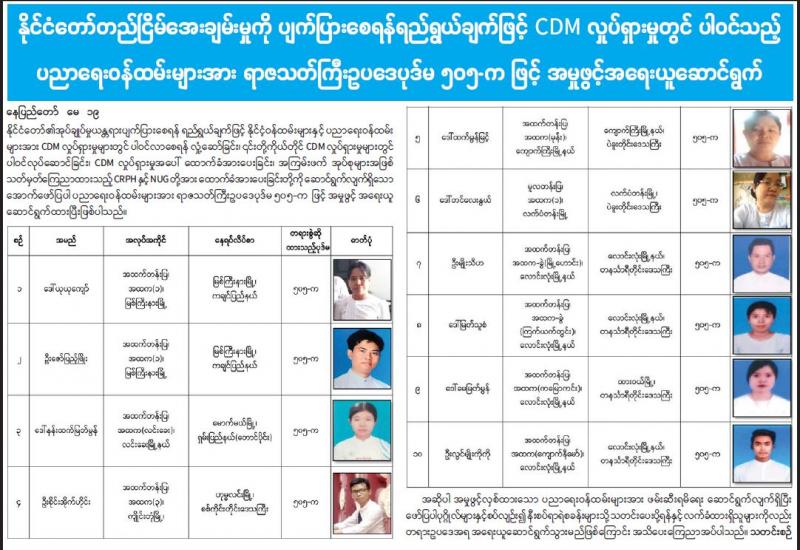 အကြမ်းဖက်ဆန္ဒပြရာတွင် ပါဝင်သောလူငယ်များအနေဖြင့် အဖျက်အမှောင့် ဆောင်ရွက် လိုသော လူတစ်စု၏သွေးဆောင်စည်းရုံးမှု၊ ချိတ်ဆက်ပေးမှုကြောင့် တိုင်းရင်းသား လက်နက်ကိုင်အဖွဲ့အစည်းတစ်ခု နယ်မြေအတွင်း၌ အကြမ်းဖက်ဖောက်ခွဲဖျက်ဆီးရေး သင်တန်းအား တက်ရောက်ပြီး ပြန်လည်ရောက်ရှိနေကြောင်း သတင်းပေးပို့ချက်များအရ လုံခြုံရေးတပ်ဖွဲ့ဝင်များက သက်ဆိုင်ရာနယ်မြေအလိုက် လုံခြုံရေးလုပ်ငန်းများအား အထူးကြပ်မတ်စစ်ဆေးဆောင်ရွက်ခဲ့သည်။