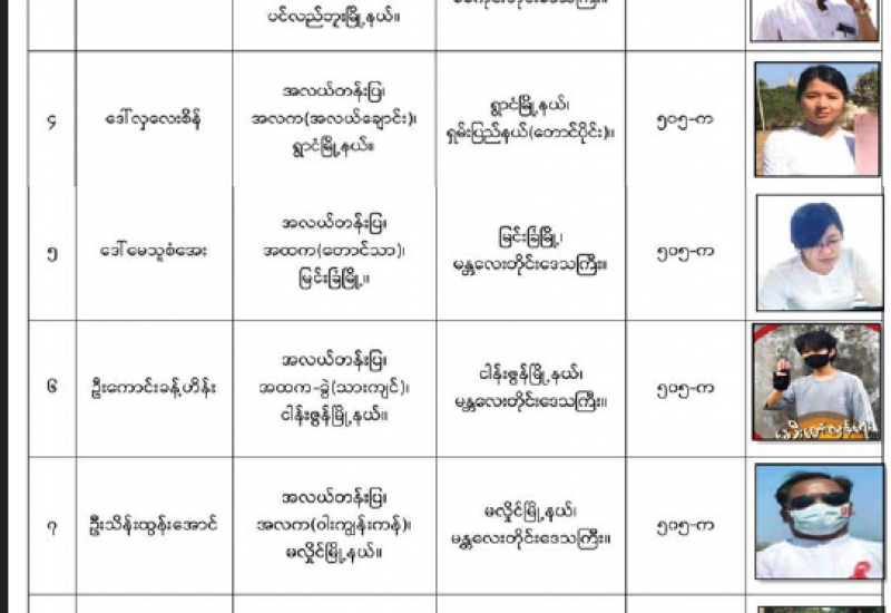 နိုင်ငံတော်၏အုပ်ချုပ်မှုယန္တရားပျက်ပြားစေရန် ရည်ရွယ်ချက်ဖြင့် နိုင်ငံ့ဝန်ထမ်းများနှင့် ပညာရေး ဝန်ထမ်းများအား CDM လှုပ်ရှားမှုများတွင် ပါဝင်လာစေရန်လှုံ့ဆော်ခြင်း၊ ၎င်းတို့ကိုယ်တိုင် CDM  လှုပ်ရှားမှုများ တွင် ပါဝင်လုပ်ဆောင်ခြင်း၊ CDM လှုပ်ရှားမှုအပေါ် ထောက်ခံအားပေးခြင်း၊ CRPH မတရား အသင်းအား ထောက်ခံ အားပေးခြင်းတို့ကို ဆောင်ရွက်လျက်ရှိသော အောက်ဖော်ပြပါ ပညာရေးဝန်ထမ်း များအား ရာဇသတ်ကြီး ဥပဒေပုဒ်မ ၅၀၅-က ဖြင့် အမှုဖွင့်အရေးယူဆောင်ရွက်ထားပြီးဖြစ်သည်။