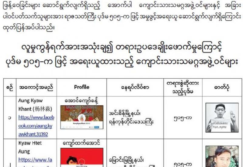 နိုင်ငံတော်အတွင်း ဆူပူအုံကြွမှုများဖြစ်ပေါ်စေရေးအတွက် နောက်ကွယ်မှ သွေးထိုးလှုံ့ဆော် နည်းမျိုးစုံဖြင့် ဆောင်ရွက်လျက် ရှိသကဲ့သို့ အဖျက်အမှောင့် ဆောင်ရွက်လိုသူအချို့မှလည်း နိုင်ငံတော်ဆန့်ကျင်ရေးစာသားများအား အများပြည်သူသုံး လမ်းမကြီးများ၊ နိုင်ငံတော်ပိုင်နှင့် အများပြည်သူပိုင် အဆောက်အအုံများပေါ်တွင်ရေးသားခြင်း၊ ဆန့်ကျင်ရေးစာသားပါ ဗီနိုင်းစများ၊ ပိုစတာများ၊ စာရွက်များကို ချိတ်ဆွဲခြင်း၊ လမ်းများပေါ်တွင် ဖြန့်ကြဲခြင်းတို့ဖြင့် နိုင်ငံတော်အတွင်း မတည်မငြိမ် ဖြစ်စေရန် ရည်ရွယ်ချက်ရှိရှိဖြင့် ဆောင်ရွက်လျက်ရှိသည် ကိုတွေ့ရှိရပါသည်။ လုံခြုံရေးတပ်ဖွဲ့ဝင်များအနေဖြင့် နိုင်ငံတော် တည်ငြိမ်ရေးနှင့် ရပ်ရွာအေးချမ်းသာယာရေးအတွက် ဆူပူဆန္ဒပြမှုများနှင့် အကြမ်းဖက်မှု ဖြစ်စဉ်များကို ဥပဒေနှင့်အညီ ဖြိုခွဲထိန်းသိမ်းလျက်ရှိသကဲ့သို့ ဆန့်ကျင်စာ၊ လှုံ့ဆော်စာ၊ ရေးသားလှုံ့ဆော် ဖြန့်ဝေသူများကိုလည်း နိုင်ငံတော်တည်ငြိမ် ရေးအတွက်ရှေးရှုကာ ဥပဒေနှင့်အညီ ဖမ်းဆီး ထိန်းသိမ်း ဆောင်ရွက်လျက်ရှိသည်။