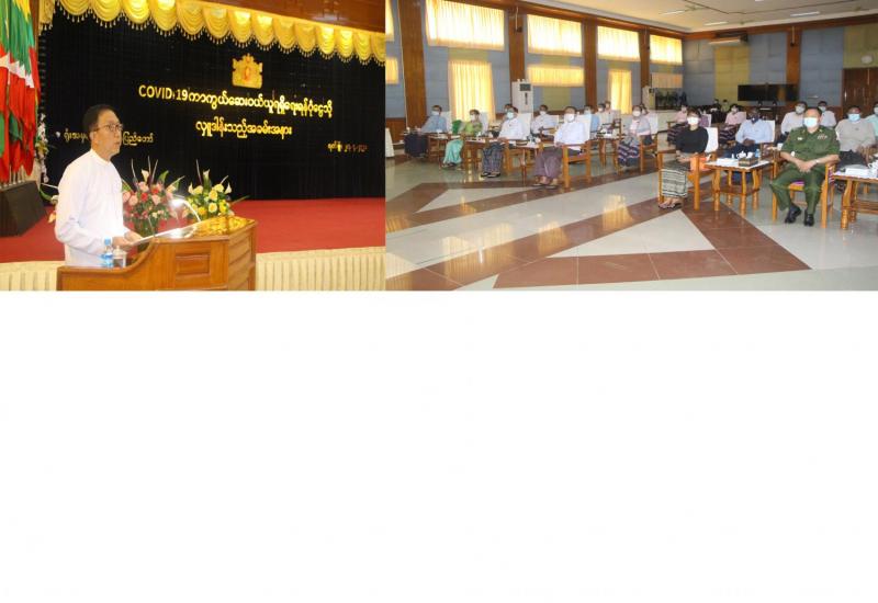 ကိုဗစ်-၁၉ ရောဂါကာကွယ်ထိန်းချုပ်ရေး လုပ်ငန်းညှိနှိုင်းအစည်းအဝေးကို ယနေ့နံနက်ပိုင်းတွင် ကျန်းမာရေးနှင့်အားကစားဝန်ကြီးဌာန ရုံးအမှတ် (၄) အစည်းအဝေးခန်းမ၌ ဗီဒီယိုကွန်ဖရင့် စနစ်ဖြင့် ကျင်းပသည်။