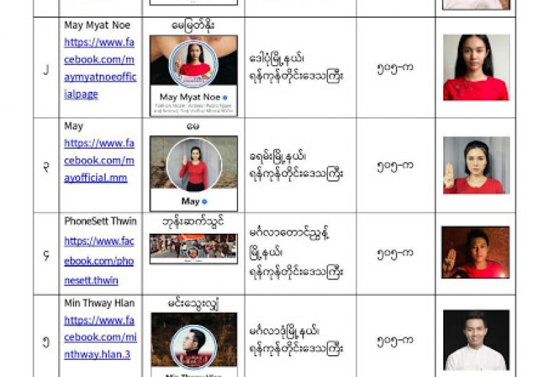 နိုင်ငံတော်၏ အုပ်ချုပ်မှုယန္တရားပျက်ပြားစေရန်ရည်ရွက်ချက်ဖြင့် နိုင်ငံ့ဝန်ထမ်းများအား CDM လှုပ်ရှားမှုတွင် ပါဝင်စေရန်လှုံ့ဆော်ခြင်း၊ CRPH မတရားအသင်းအား ထောက်ခံသည့် အကြောင်းအရာများ၊ မမှန်သတင်းများအားဖြန့်ဝေခြင်း၊ နိုင်ငံတော်တည်ငြိမ်အေးချမ်းမှုကို ပျက်ပြားစေပြီး ဆူပူအုံကြွမှုဖြစ်ပေါ်စေရန်နှင့် အများပြည်သူအထိတ်တလန့်ဖြစ်စေရန် အတွက် သွေးထိုးလှုံ့ဆော်မှုများပြုလုပ်ခြင်း၊ Social Punishment ပြုလုပ်ခြင်းများကို လူမှုကွန်ရက် စာမျက်နှာများတွင် ရည်ရွယ်ချက်ရှိရှိ ဖြင့်ဖော်ပြခြင်းနှင့် ဖြန့်ဝေခြင်းများ ဆောင်ရွက် လျက်ရှိသည့် အနုပညာရှင်အချို့နှင့် အခြားပါဝင်ပတ်သက်သူများအား ရာဇသတ်ကြီးပုဒ်မ ၅၀၅-က ဖြင့် အမှုဖွင့်အရေးယူ ဆောင်ရွက်လျက်ရှိကြောင်းကို နေ့စဉ်သတင်းထုတ်ပြန်လျက် ရှိပါသည်။