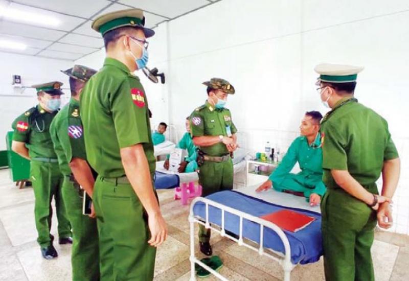 ရှမ်းပြည်နယ်(မြောက်ပိုင်း) လားရှိုး မြို့ရှိ တပ်မတော်ဆေးရုံ၊ ကရင် ပြည်နယ် ဘားအံမြို့ရှိ နယ်မြေခံ တပ်မတော်ဆေးရုံနှင့် စစ်ကိုင်းတိုင်းဒေသကြီး ကလေး မြို့ရှိ နယ်မြေခံတပ်မတော်ဆေးရုံ တို့၌ တက်ရောက်ကုသမှုခံယူ လျက်ရှိသော အရာရှိ၊ စစ်သည်၊ မိသားစုများနှင့် ဒေသခံပြည်သူ များအား ဧပြီ ၂၃ ရက်နှင့် ယနေ့ တို့တွင် သက်ဆိုင်ရာ တိုင်းစစ် ဌာနချုပ်များမှ တိုင်းမှူးများနှင့် တာဝန်ရှိသူများက သွားရောက် ကြည့်ရှု၍ တစ်ဦးချင်း၏ ရောဂါ ဖြစ်ပွားမှုများ၊ ဆေးကုသပေးထား မှုနှင့် ကျန်းမာရေး တိုးတက်မှု အခြေအနေများကို မေးမြန်း အားပေးစကား ပြောကြားပြီး စားသောက်ဖွယ်ရာများ ပေးအပ်သည်။