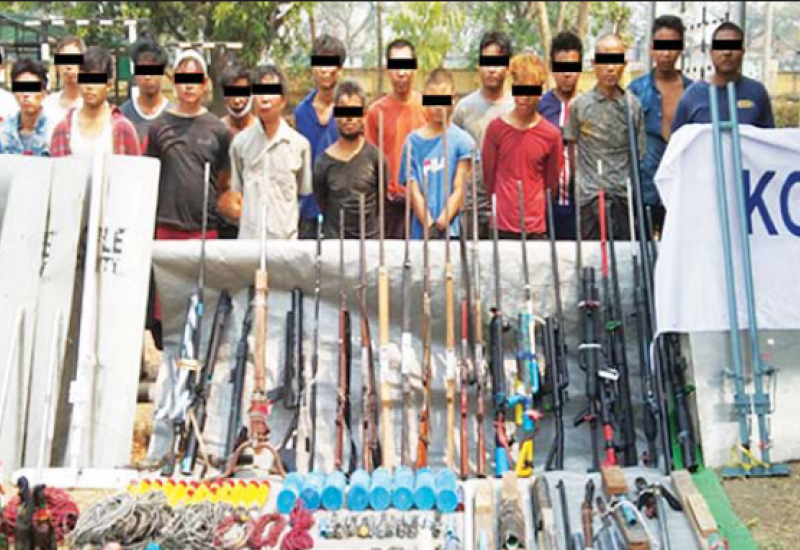 ဆူပူအကြမ်းဖက်သူများအသုံးပြုလျက်ရှိသည့် လက်နက်များနှင့် ပစ္စည်းများ သိုဝှက်ထားမှုနှင့် ကိုင်ဆောင်မှုများကို လုံခြုံရေးတပ်ဖွဲ့ဝင်များက စစ်ဆေးရှာဖွေ သတင်းဖော်ထုတ် ဖမ်းဆီးထိန်းသိမ်းခြင်းများ ဆောင်ရွက်လျက်ရှိရာ ဧပြီ ၇ ရက်တွင် ပျဉ်းမနားမြို့၊ ဥယာဉ်စုရပ်ကွက်၊ အိုးဘိုရပ်၊ သစ္စာလမ်းနှင့် ပဒုမ္မာလမ်းကြား၊ အမှတ်(၃/၁၉၆)နေ ဦးအောင်အောင် (ဘ)ဦးစိန်မောင်အား ဆူပူအကြမ်းဖက်မှုတွင်အသုံး ပြုသည့်ပစ္စည်းများနှင့်လည်းကောင်း၊ မော်လမြိုင်မြို့၊ ကျိုက်ဖနဲရပ်ကွက်၊ အောင်သုခလမ်း၊ အမှတ်(၆၅)နေ မင်းကောင်းစံ (ဘ)ဦးဇော်ဝင်းအား ၎င်း၏နေအိမ်၌ ဆူပူအကြမ်းဖက်မှု များတွင်အသုံးပြုသည့် ပစ္စည်းများဖြင့်လည်းကောင်း၊ မြောင်းမြမြို့နယ်၊ ကဝက်တိုက်နယ်၊ တစ်ပင်ချောင်းအုပ်စု၊ မြေနီကုန်းကျေးရွာနေ NLD အဖွဲ့ဝင် သိန်းဇော်ဦးနှင့် သုံးခွကွမ်းခြံကျေးရွာနေ ထွန်းထွန်းအောင်တို့ ၂ ဦးအား လေသေနတ် ၁ လက်၊ မက်ဂဲနစ် Gun ၁ လက်၊ အခြားဆက်စပ်ပစ္စည်းများနှင့်လည်းကောင်း၊