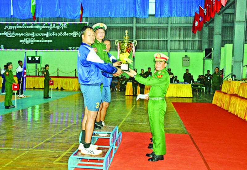 ၂၀၂၅ ခုနှစ် တပ်မတော်ကာကွယ်ရေးဦးစီးချုပ်ဒိုင်း တပ်မတော် (ကြည်း၊ ရေ၊ လေ) (အမျိုးသား/အမျိုးသမီး) ဘော်လီဘောပြိုင်ပွဲ ဗိုလ်လုပွဲနှင့် ဆုချီးမြှင့်ခြင်းကို ယနေ့မွန်းလွဲပိုင်းတွင် အရှေ့ပိုင်းတိုင်းစစ်ဌာနချုပ် အားကစားခန်းမ၌ ပြုလုပ်ရာ တိုင်းမှူး ဗိုလ်မှူးချုပ် နိုင်ဇော်ဦးနှင့် တာဝန်ရှိသူများ၊ အရာရှိ၊ စစ်သည်၊ မိသားစုဝင်များ၊ ပြိုင်ပွဲဝင်အားကစားသမားများ၊ ဒိုင်အဖွဲ့ဝင်များ၊ အားကစားဝါသနာရှင်များနှင့် ဖိတ်ကြားထားသူများ တက်ရောက်ကြသည်။