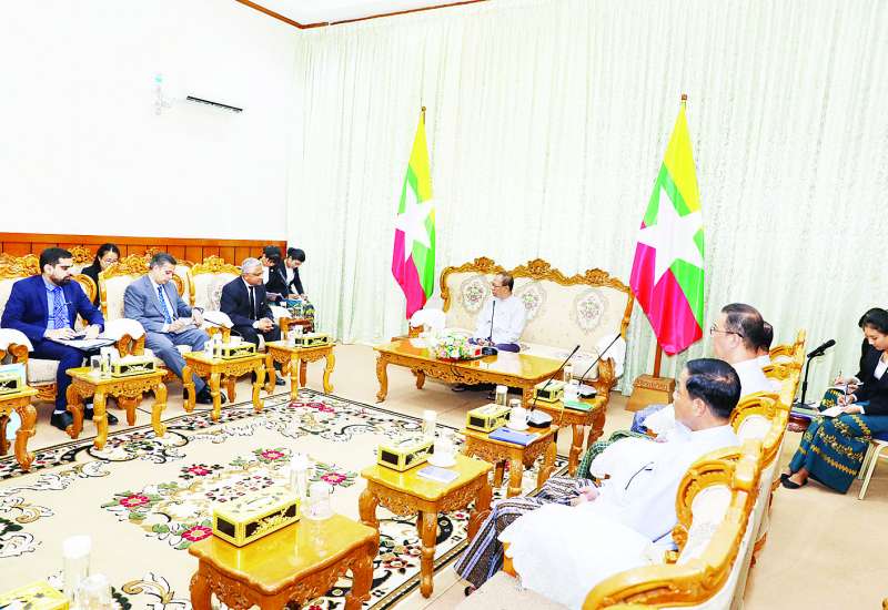 ပြည်ထောင်စုရွေးကောက်ပွဲကော်မရှင်ဥက္ကဋ္ဌ ဦးသန်းစိုးသည် မြန်မာနိုင်ငံဆိုင်ရာ အိန္ဒိယနိုင်ငံ သံအမတ်ကြီး H.E. Mr. Abhay Thakur အား ယနေ့မွန်းလွဲပိုင်းတွင် နေပြည်တော်ရှိ ပြည်ထောင်စုရွေးကောက်ပွဲကော်မရှင်ရုံး ဧည့်တွေ့ခန်းမဆောင်၌ လက်ခံတွေ့ဆုံသည်။