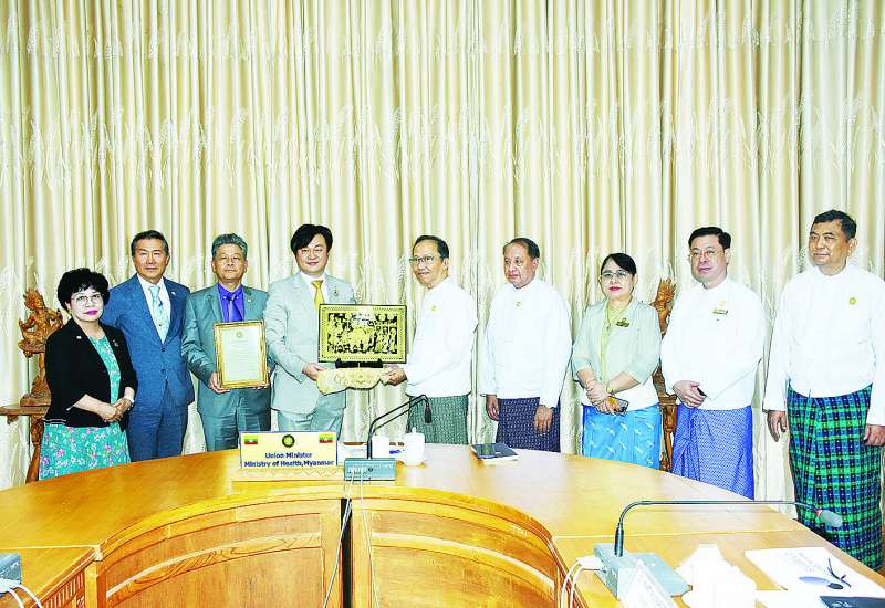ကိုရီးယားသမ္မတနိုင်ငံ SDG group inc နှင့် မြန်မာနိုင်ငံ MCS group Co.,Ltd တို့မှ ဆေးနှင့် ဆေးပစ္စည်းများ ပူးပေါင်းလှူဒါန်းပွဲကို ယနေ့နံနက်ပိုင်းတွင် ကျန်းမာရေးဝန်ကြီးဌာန အစည်းအဝေးခန်းမ၌ ကျင်းပသည်။