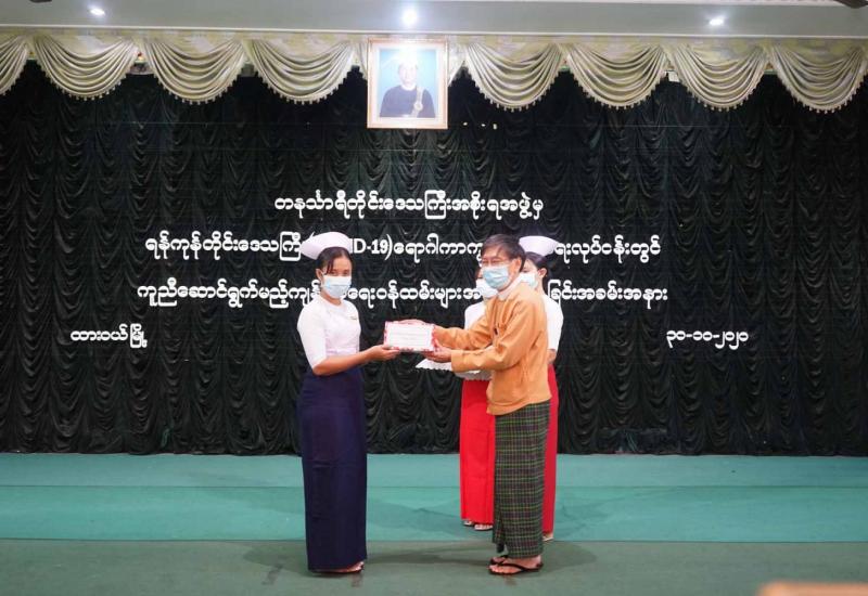 တနင်္သာရီတိုင်းဒေသကြီးအစိုးရအဖွဲ့က ရန်ကုန်တိုင်းဒေသကြီး၌ ဖြစ်ပွားနေသောကိုဗစ်-၁၉ ရောဂါ ကာကွယ် ထိန်းချုပ် ကုသရေးလုပ်ငန်းများတွင် ပါဝင်ကူညီနိုင်ရန်တနင်္သာရီတိုင်းဒေသကြီးမှ တတိယအကြိမ် သွားရောက်မည့် ကျန်းမာရေးဝန်ထမ်းများအား ဂုဏ်ပြုခြင်းအခမ်းအနားကို ယနေ့နံနက် ၉ နာရီ က ထားဝယ်မြို့၊ မြို့တော်ခန်းမ၌ကျင်းပသည်။