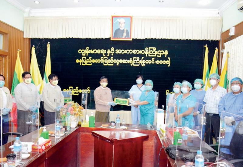 မကွေးတိုင်းဒေသကြီးအတွင်း ကိုဗစ်-၁၉ ရောဂါကာကွယ်ထိန်းချုပ် ကုသရေးဆိုင်ရာ လုပ်ငန်းများတွင် အသုံးပြုနိုင်ရန် အတွက် ယနေ့နံနက်ပိုင်းက တိုင်းဒေသကြီး ဝန်ကြီးချုပ် ဒေါက်တာ အောင်မိုးညိုထံ မကွေးတိုင်းဒေသကြီး ပတ်ဝန်းကျင် ထိန်းသိမ်း ရေးဦးစီးဌာနက တိုင်းဒေသကြီးအစိုးရအဖွဲ့ရုံး အစည်းအဝေးခန်းမ မှာ လှူဒါန်း ပေးအပ်ခဲ့ကြောင်း သိရသည်။