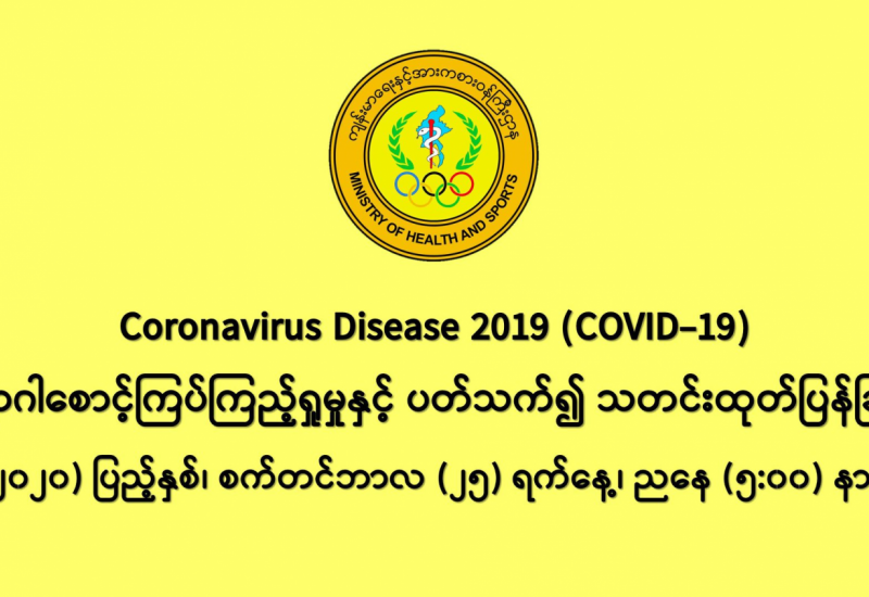 မြန်မာနိုင်ငံတွင် ကိုဗစ်-၁၉ ရောဂါဖြစ်ပွားမှုအခြေအနေသည် အထူးသဖြင့် ရန်ကုန်တိုင်းဒေသကြီးတွင် အများဆုံးဖြစ်ပွားနေဆဲ အဆင့်ရှိနေသေးသည်။ ရောဂါဖြစ်ပွားမှုနှုန်းကို အမြန်ဆုံးလျှော့ချနိုင်ရန်အတွက် ကျန်းမာရေးနှင့် အားကစား ဝန်ကြီးဌာနက ၂၀၂၀ ပြည့်နှစ် မတ်လကတည်းက ထုတ်ပြန် ကြေညာခဲ့သော စည်းမျဉ်း၊ စည်းကမ်းသတ်မှတ်ချက်များကို အလေးထား လိုက်နာဖို့လိုအပ်ပါသည်။